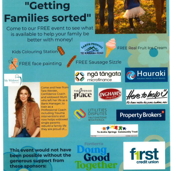 Come to Te Aroha Family Budgeting Services FREE event to see what is available to help your family be better with money!