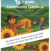 WE NEED YOU! Te Aroha Community Gardens is looking for a secretary, garden manager, funding co-ordinator for the next AGM
