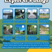 Get out and about in nature this summer and play Explorers Bingo with us. Pop into Te Aroha Visitor Information