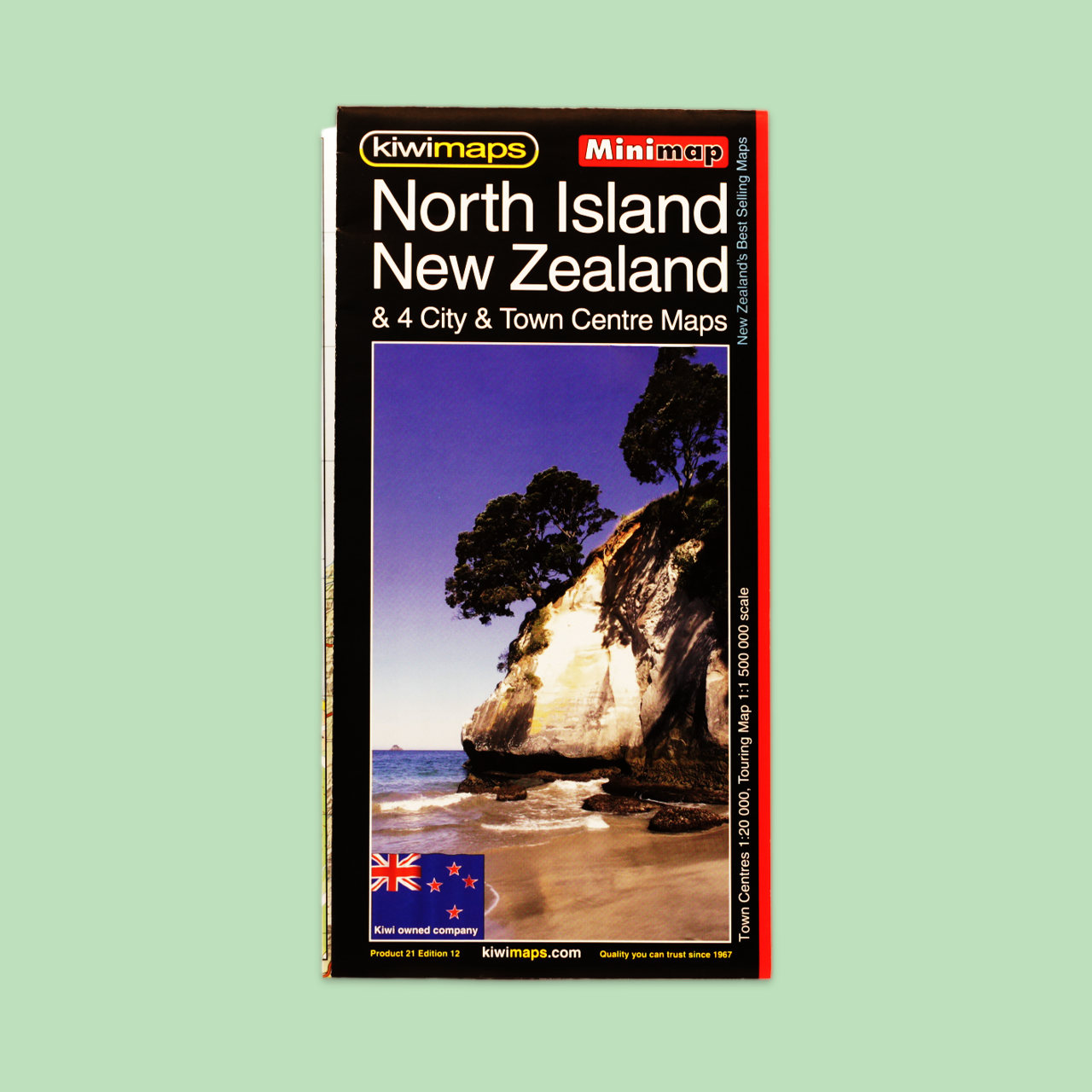 Kiwi Maps North Island New Zealand Road Map & 4 City and Town Centre Maps